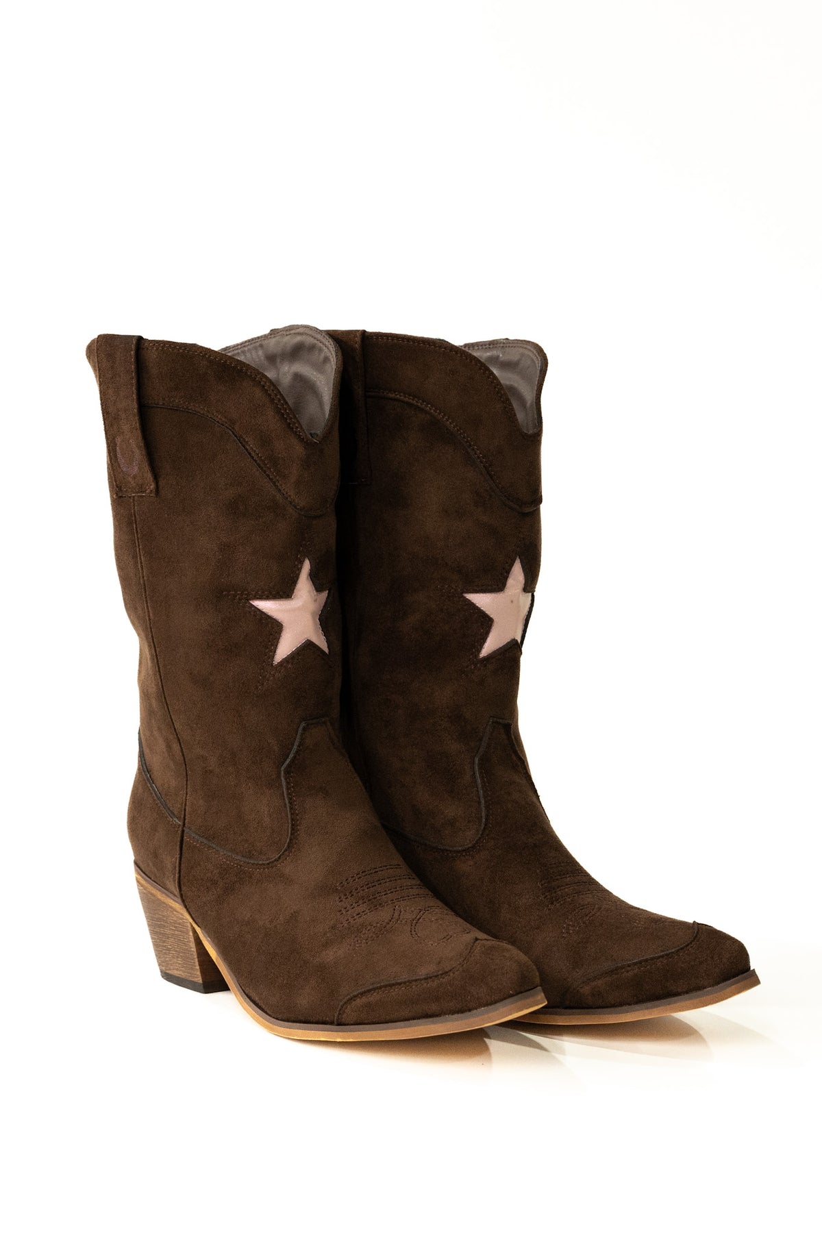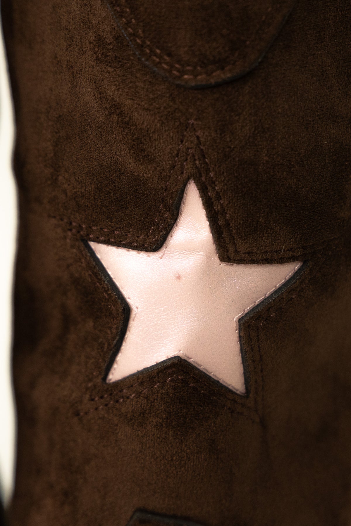 The Bandera boot is made from high quality and super soft microfibre suede (faux suede) and a pop of iridescent pale pink, faux leather in the stars on the front and back of the boots.