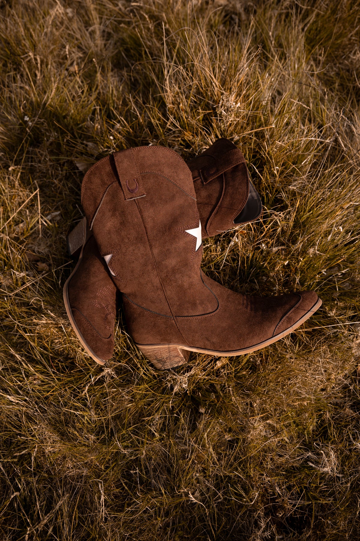 The Bandera boot is made from high quality and super soft microfibre suede (faux suede) and a pop of iridescent pale pink, faux leather in the stars on the front and back of the boots.